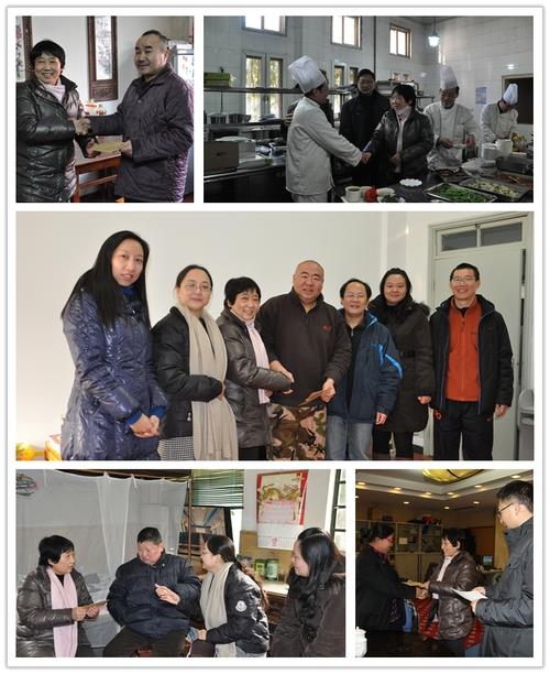 1月10日下午 在乐乎楼集团党支部书记、副总经理程克坚等人的陪同下,陆翠兰、黄坚来到乐乎楼集团延长校区厨房慰问了忙碌在岗位上的王顺平同志。王顺平同志患有心脏早搏,腿关节增生导致行走困难,他的儿子身患残疾,护养在家。当看到他在岗位上忙前忙后,积极乐观,陆书记对他表示感谢并祝贺他及家人新年快乐。