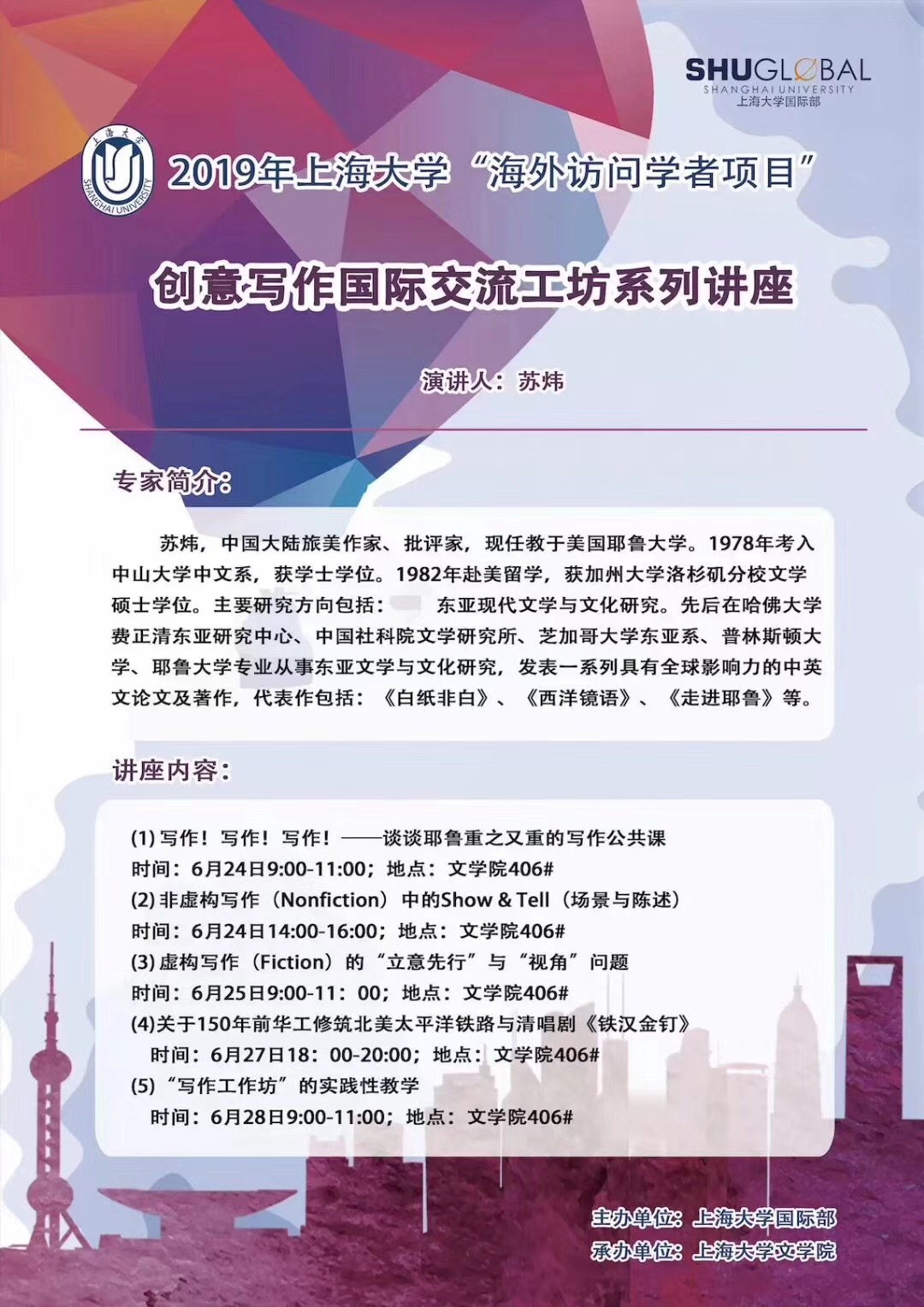 苏炜:创意写作国际交流工坊系列讲座
