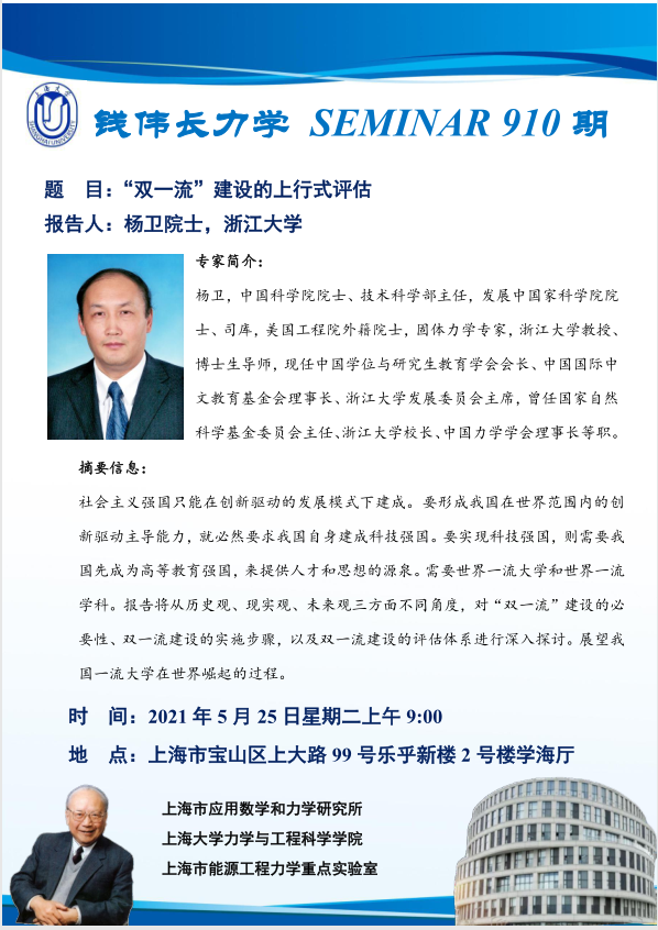 报告主题:“双一流”建设的上行式评估