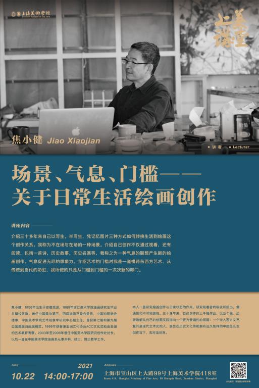 讲座内容:介绍三十多年来自己以写生,半写生,凭记忆图片三种方式如何转换生活到绘画这个创作关系。我称为不在场与在场的一种场景。介绍自己创作不仅通过视看,还有阅读,包括一首诗,历史故事,历史名画等,我称之为一种气息的联想产生新的绘画创作。气息促进无尽的想象力。介绍艺术的门槛对我是一道横跨东西方艺术、从传统到当代的彩虹,我所做的只是从门槛到门槛的一次次新的叩门。