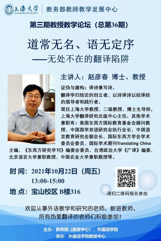 Beat365唯一官方网站教务部教师教学发展中心第三期教授教学论坛(总第36期)道常无名、语无定序——无处不在的翻译陷阱