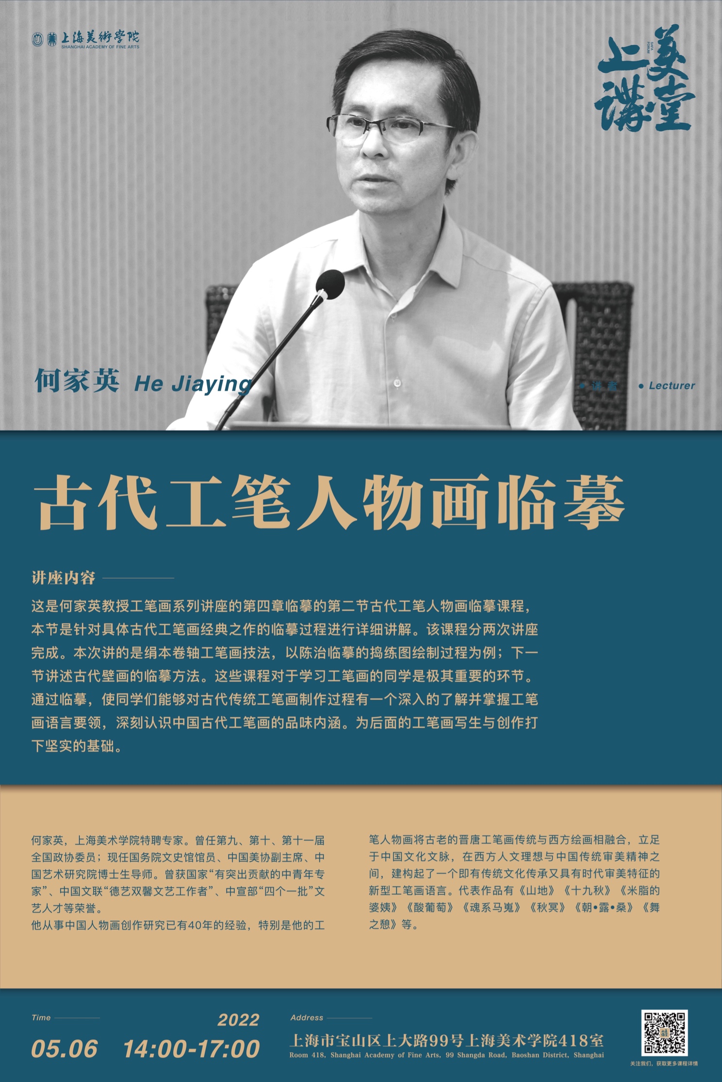 讲座内容:这是何家英教授工笔画系列讲座的第四章临摹的第二节古代工笔人物画临摹课程,本节是针对具体古代工笔画经典之作的临摹过程进行详细讲解。该课程分两次讲座完成。本次讲的是绢本卷轴工笔画技法,以陈治临摹的捣练图绘制过程为例;下一节讲述古代壁画的临摹方法。这些课程对于学习工笔画的同学是极其重要的环节。通过临摹,使同学们能够对古代传统工笔画制作过程有一个深入的了解并掌握工笔画语言要领,深刻认识中国古代工笔画的品味内涵。为后面的工笔画写生与创作打下坚实的基础。(会有示范,请做好示范条件的准备,以便更清晰的呈现技法过程。)