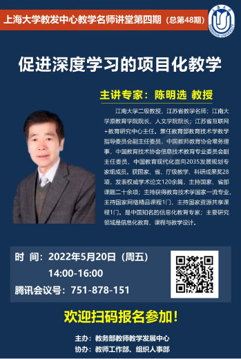为促进学校教师教学能力的发展,全面提升教师教学信息化素养,教务部教发中心拟举办“促进深度学习的项目化教学”为主题的教学名师讲堂。具体安排如下: